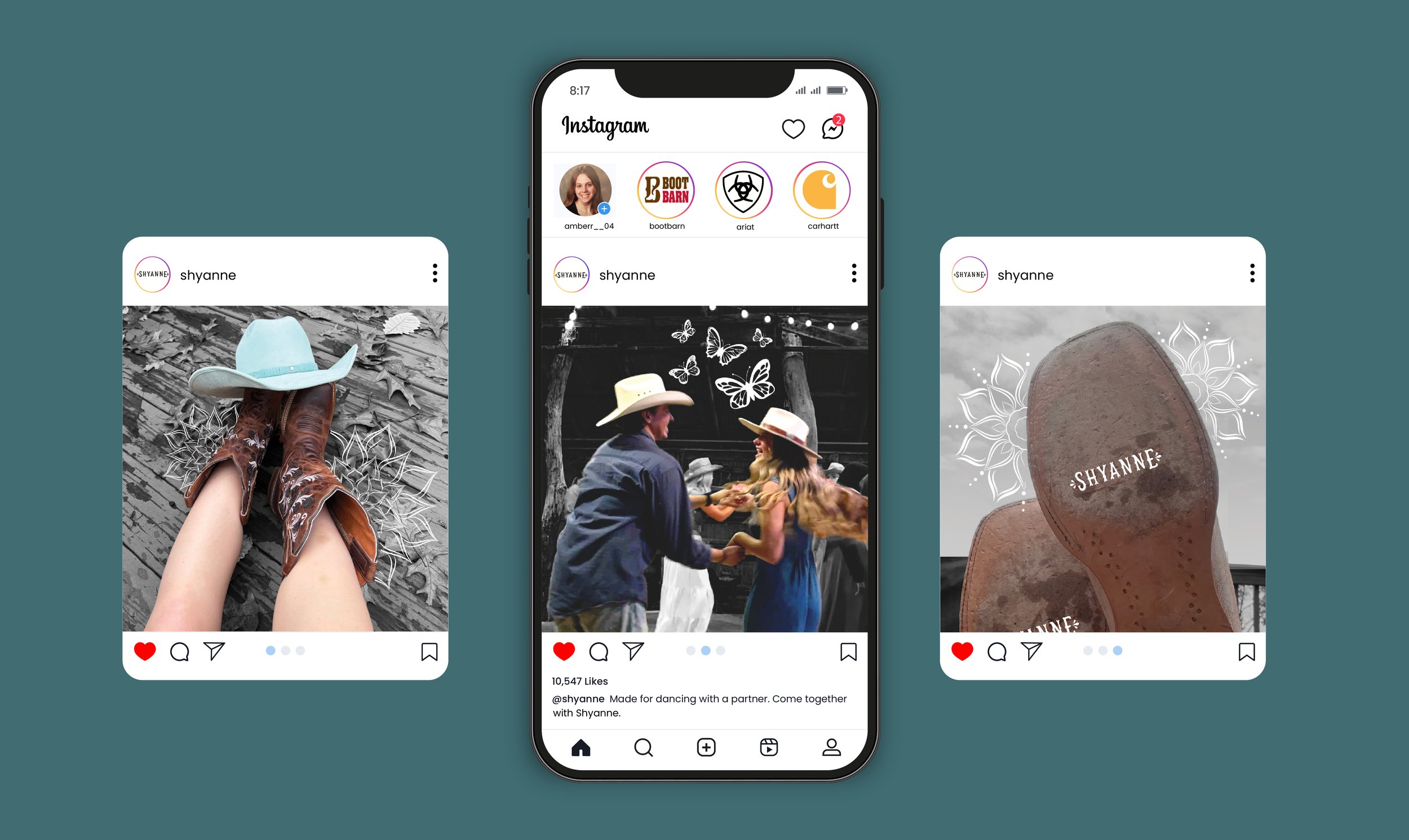 Based off of National Cowboy Boot Day (October 8th) Shyanne cowgirl boots are made to move, perfect for line dancing on hardwood floors. With smooth leather soles for effortless gliding, and sleek western style, this campaign shows they’re the boots that dance as hard as you do.